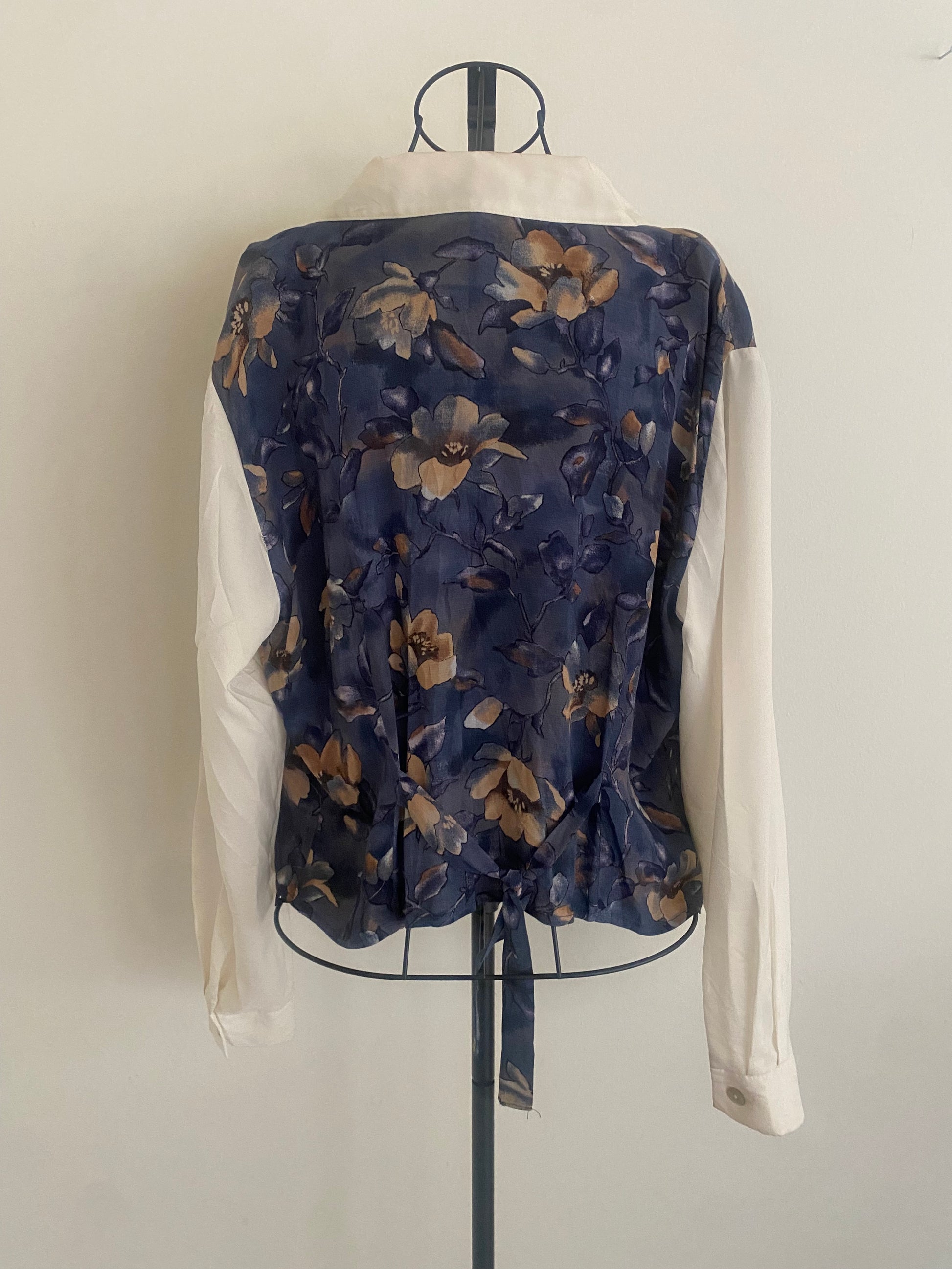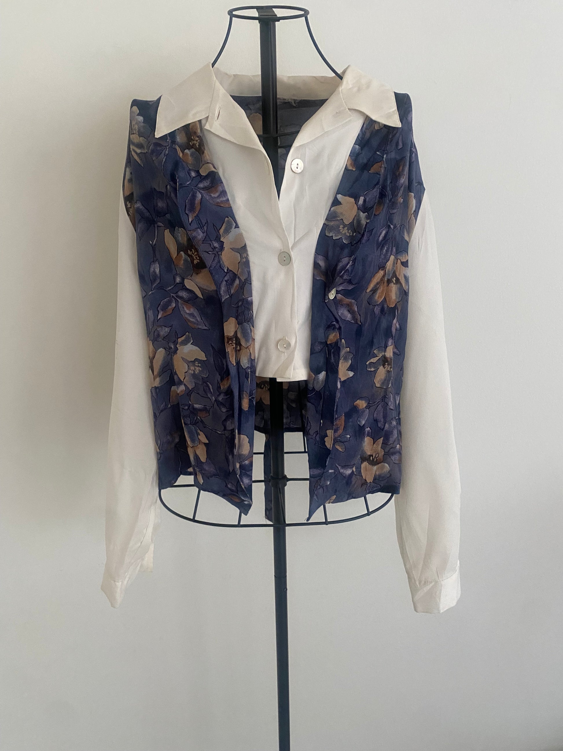 cropped white button up w/ attached floral vest